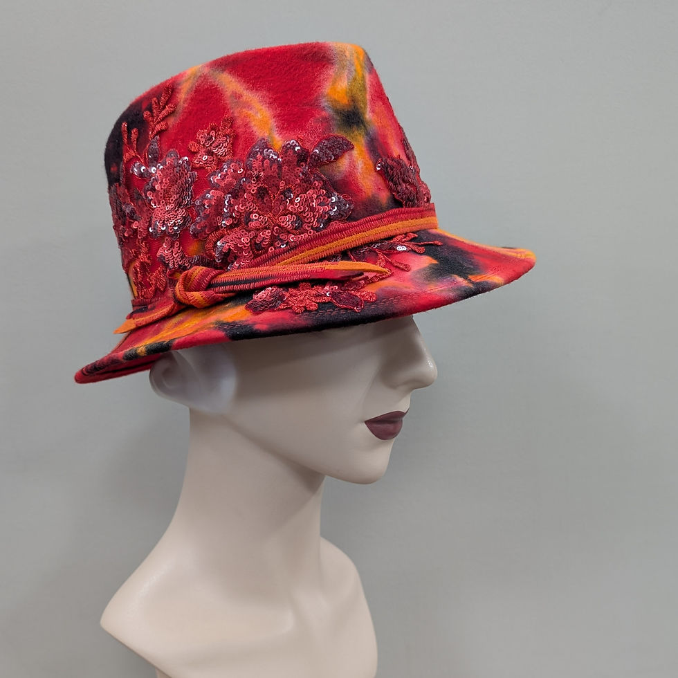 Flapper Cloche with Handmade French Wire Ribbon Flowers